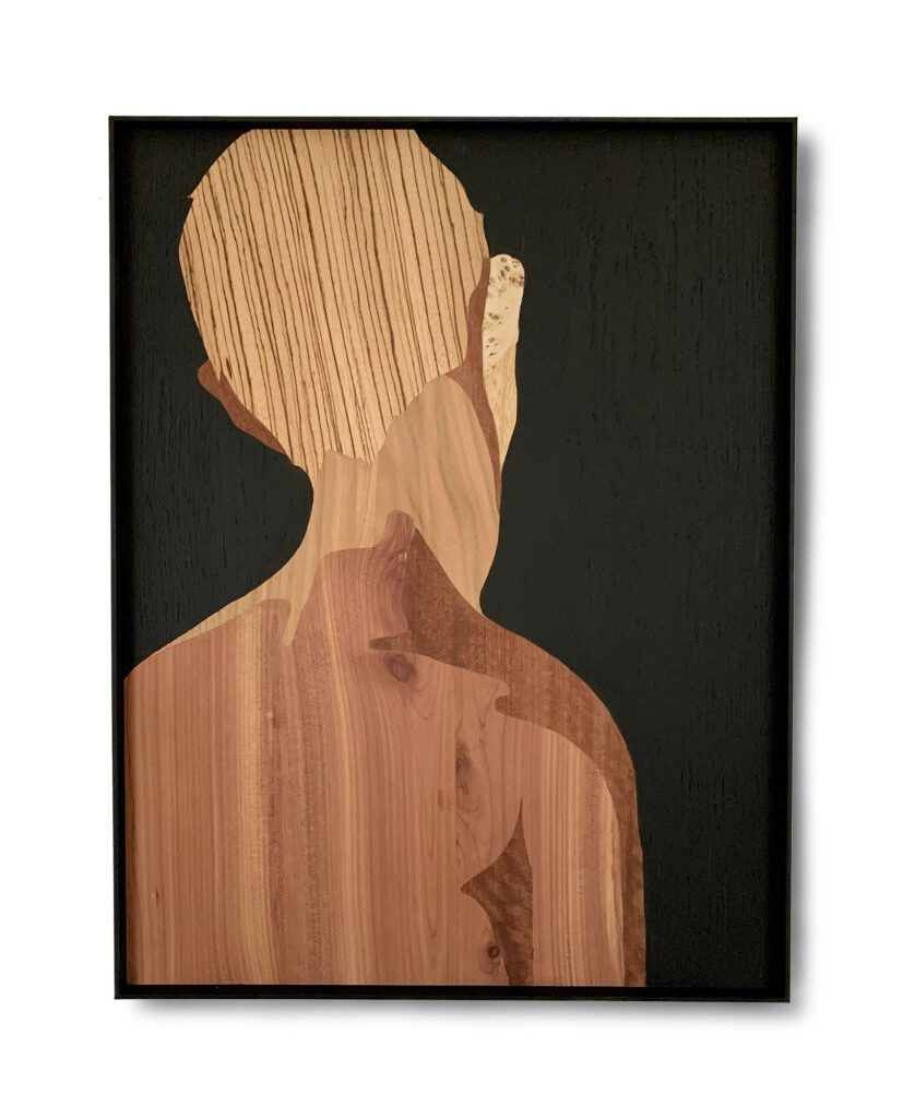 In his latest series, Human Nature, Frank demonstrates his exceptional artistic skill and creativity by crafting intricate portraits using delicate wood veneer.